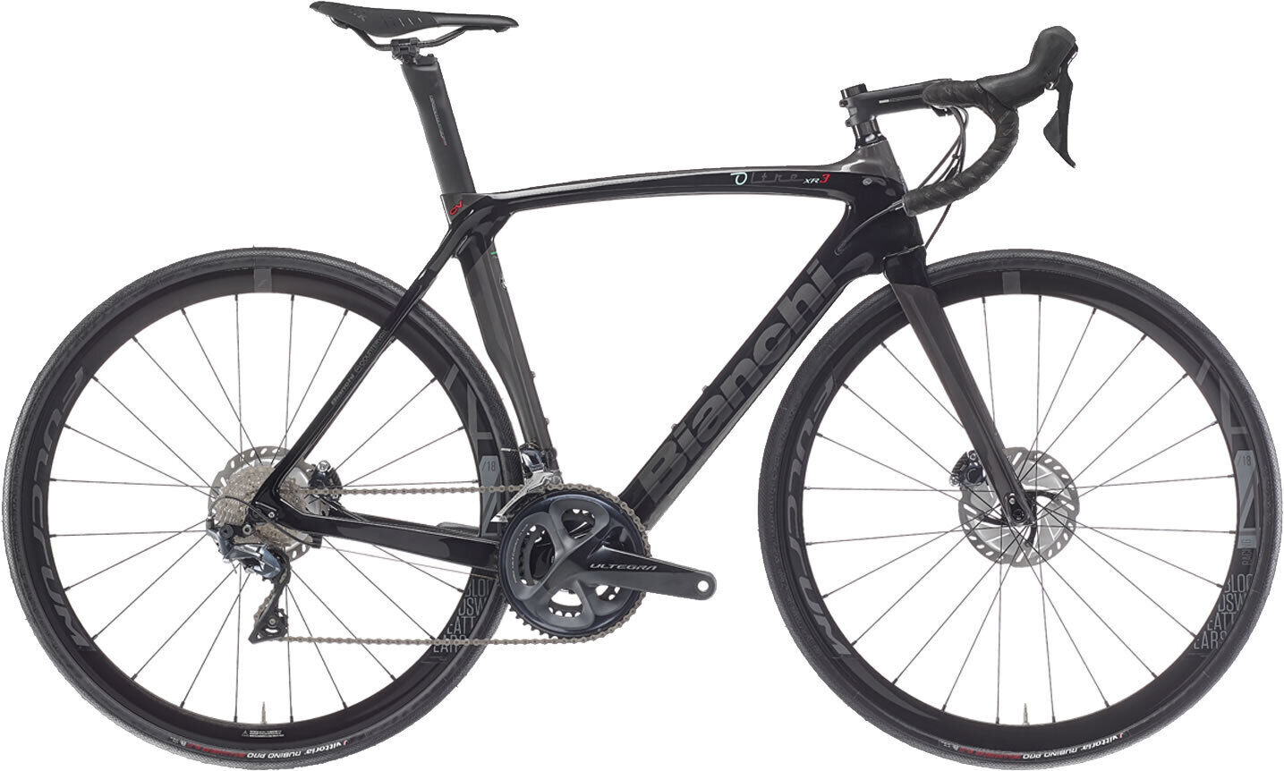 | Frame | Oltre XR3 Disc carbon w/Bianchi CV, mechanical/electronic shifting compatible, PressFit BB 86,5x41mm, flat mount calipers, thru axle 12x142mm, sizes 47-50-53-55-57-59-61cm |