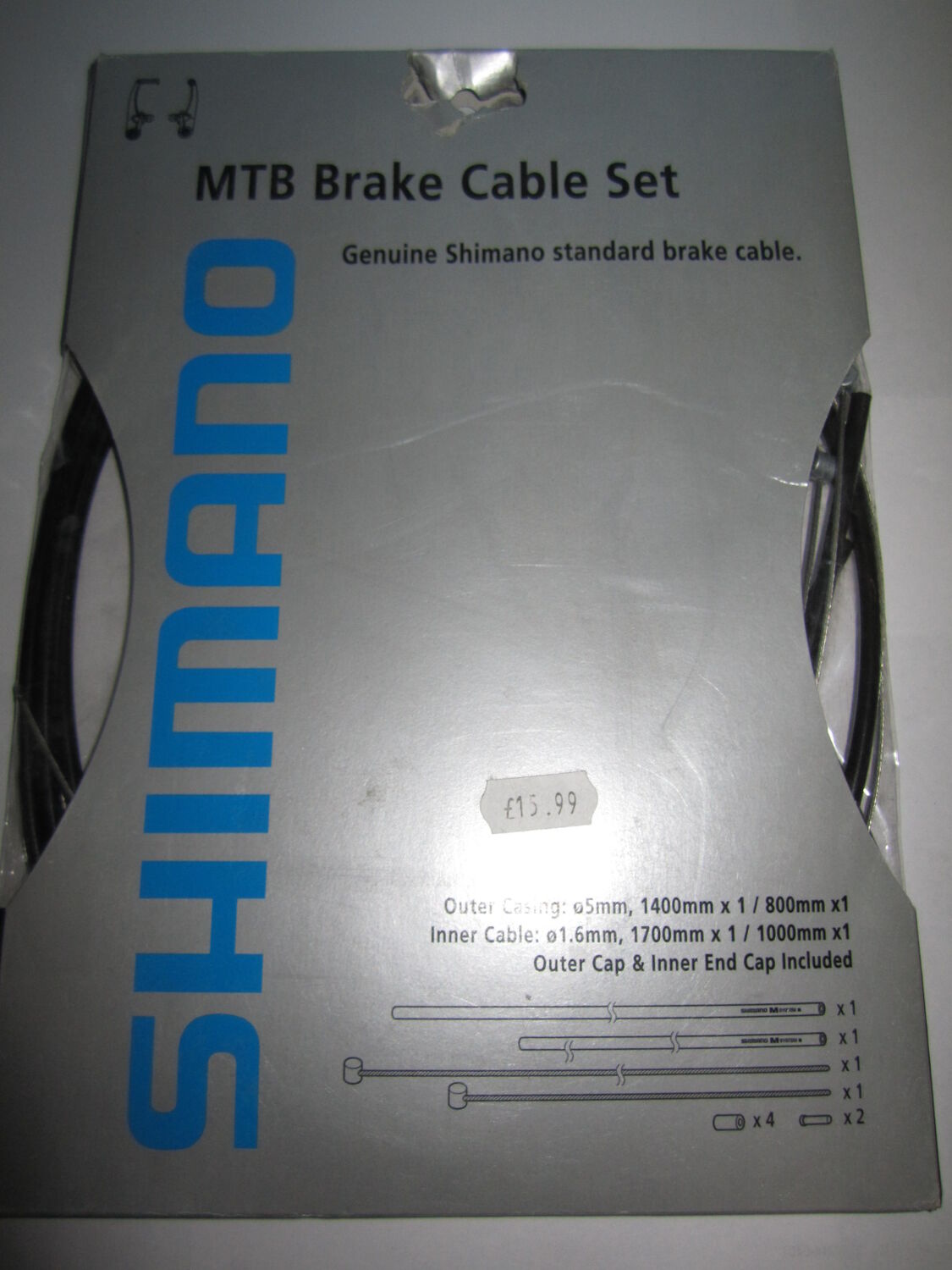 | Description | Brake cables for flat handlebar style brakes Outer Casing: 5mm, 1400mm x 1 / 800mmx1 Innre Cable: 1.6mm, 1700mm x 1 / 1000mm x 1 Outer Cap and Inner End Cap Included |