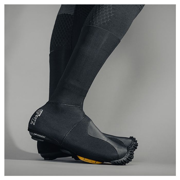 | Description | Spatz had one goal: To design the best off-road overshoe on the planet. They went back to the drawing board and developed an overshoe that creates it's own niche. Regardless of whether your poison is Gravel, MTB, Road or anything in between, the TUFR will be your weapon of choice in cold/wet conditions. Engineered with a rugged, grippy toe box, vulcanised rubber instep and kevlar protection, the TUFR is the ultimate off-road overshoe. The foot area is engineered from extremely resilient nylon-covered neoprene and the leg section is tough, lycra covered neoprene to offer warmth, protection and eliminate cuts and nicks. Double silicone aqua seals around the bottom of the boot keep moisture at bay. The Tufr keeps those blood vessels insulated in the coldest of conditions and the grippy moulded rubber toe cap laughs in the face of gravel and mud. We have developed a whole new arsenal in your war against the cold. SPATZ TUFR have been developed by an Olympic Champion, Professional Cyclists and the National Elite Gravel Champion. Engineered from the finest neoprene available, these revolutionary off-road overshoes will transform your wet/cold riding experience. Sizing: Due to the nature of the reinforced materials, Spatz recommend 'sizing-up' on this model, particularly if you will use off-road specific shoes. |
