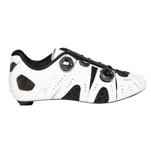 | Description | CX/TX Competition Last - With a profile specifically designed for very high-cadence riding & higher pressure, our Competition last features a more curved profile than the Sport last. The main differences include increased toe pitch & heel lift, a tighter heel & a slightly wider ball girth to allow the foot to expand under high pedaling pressures. OUTSOLE Lake Competition 100% Carbon Fiber Sole. Available in 3 hole cleat pattern UPPER Helcor Abrasion resistant leather, full grain leather and Nufoam lining. Heat moldable carbon heel counter. CLOSURE Dual Side mounted Push/Pull IP1 BOA lacing system with releasable lace guides |