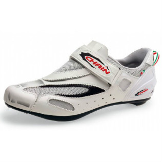 | Description | The key features of this shoe are light-weight, comfort, quick and ease of wear. The oversized inverted Velcro strap allows for a fast yet tailored closing even while cycling. The materials used have been selected especially to facilitate a quick drying of the foot, providing excellent comfort. Special features such as the tape inserted into the heel for a quick wear, as well as the tape on the side of the shoe to prepare in horizontal position for the insertion on the pedal are the signature of this shoe which makes it unique of its kind. Carbon sole Weight: 236 gr. |