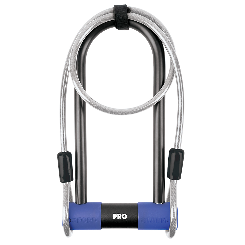 | Description | The Alarm-D Pro is a maximum-security U lock which comes with its own easy to fit carry bracket. The Pro model has an upgraded and thicker lock body and combined with a 14mm special hardened steel shackle, the lock comfortably surpasses the Sold Secure Pedal Cycle GOLD standard. It also has a 120db weatherproof movement and shock activated alarm which will scare off any would-be bike thief. The Alarm-D Pro DUO (model LK349) comes with a chunky 1.2 metre looped cable, to help extend its reach and to secure both wheels and frame.The Alarm-D Pro has a key replacement service. When you buy your Alarm-D Pro, simply note down the number which comes attached to the keys on a metal tag. Keep this in a safe place, then in the event that you are unfortunate enough to lose all your keys, it will be possible to get a new key made up for you.Key Features• Loud weatherproof 120db alarm siren• 14mm hardened steel• Unique carry bracket• Anti-pick lock mechanism• Vinyl coated shackle to protect paintwork• 3 keys supplied• Replaceable long-life Lithium CR2 battery• Sold Secure Pedal Cycle GOLD (the cable and alarm component are not part of the Sold Secure approval)• 12mm x 1.2m steel extender cable included (Duo model only)• Two sizes of U lock availableReviews"Sold Secure Gold rated lock, with a great alarm feature. 4.5/5" - Cycling Weekly "The improvements made by Oxford solidify this locks place as the best bike lock with alarm" - BikeLockWiki.comRead full review This product has met the high demands of the Police Preferred Specification and has been accredited 'Secured by Design' (SBD)SBD is a police initiative which seeks to achieve sustainable reductions in property theft.By encouraging good design and practice, SBD aims to reduce the demand on police forces and help us all live in a safer society.To see the full list of our SBD approved productsclick hereFind out more about our Security products by exploring our dedicated website: ![]() |